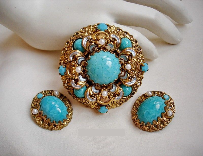 Редко встречающийся немецкий цветочный комплект - брошь и клипсы Автор дизайнер Даниэль Касофф