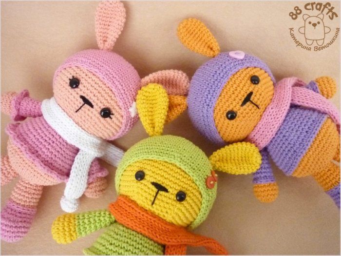 Игрушки вязанные крючком. Зайчик / Вязание игрушек на спицах и крючком, схемы и описание / КлуКлу. Рукоделие - бисероплетение, квиллинг, вышивка крестом, вязание
