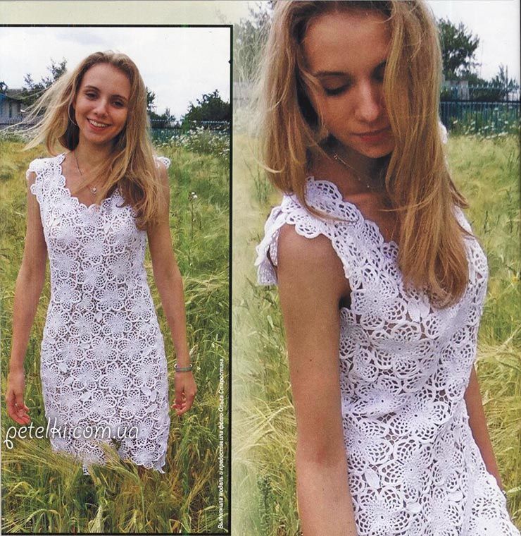 Нарядное платье из цветочных мотивов. Описание, схемы