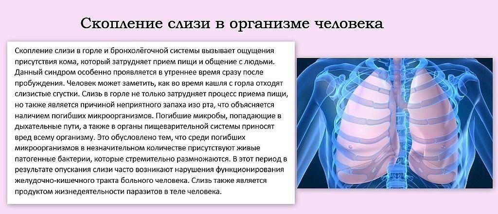 СКОПЛЕНИЕ СЛИЗИ В ОРГАНИЗМЕ ЧЕЛОВЕКА !!! **Отсюда, и болезни: Аденоиды, Ангина, Астма, Бронхит, Воспаление лёгких, Грипп, Катар, Кашель, Ларингит, Простуда, Ринит. *Стоп! -большое кол-во хлеба, сахара, картофеля, круп очищенных, мяса, жареной пищи, и молочных продуктов -накопление отбросов с кисл/реакцией, и образование слизи!..