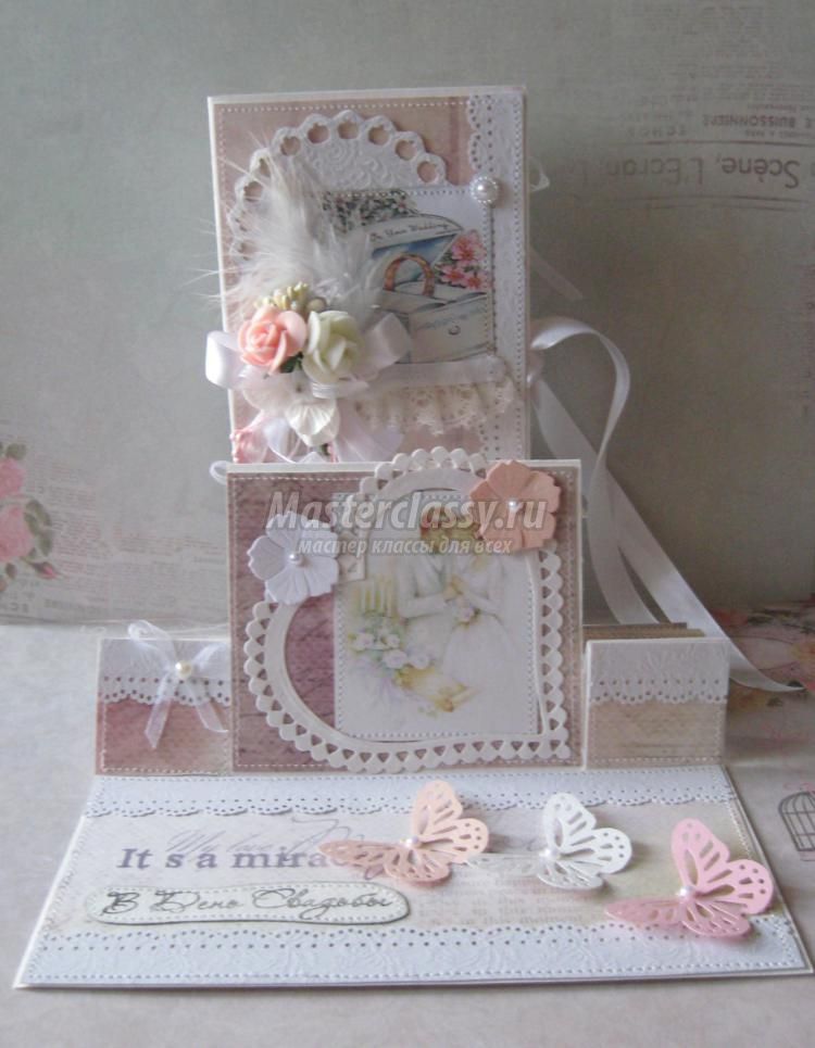 Скрапбукинг. Свадебная сложная открытка. Мастер-класс