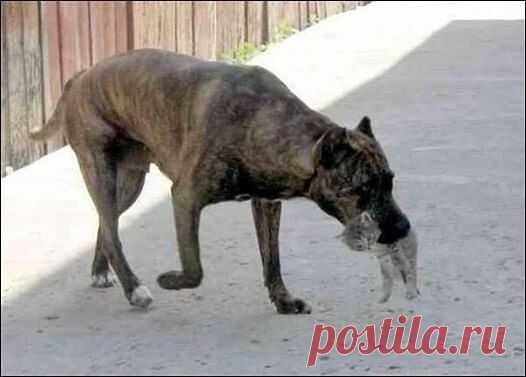 Бойцовая собака взяла на воспитание трех котят, которых бросила мать. По словам хозяйки, раньше Лора на дух не переносила кошек. С появлением же маленьких питомцев, у терьера даже появилось молоко.