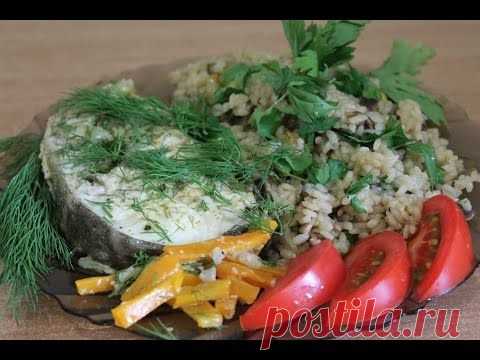 Стейк из трески и ризотто с шампиньонами