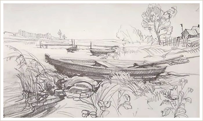 Пейзаж с лодкой. Карандашный набросок от Д. Никонова