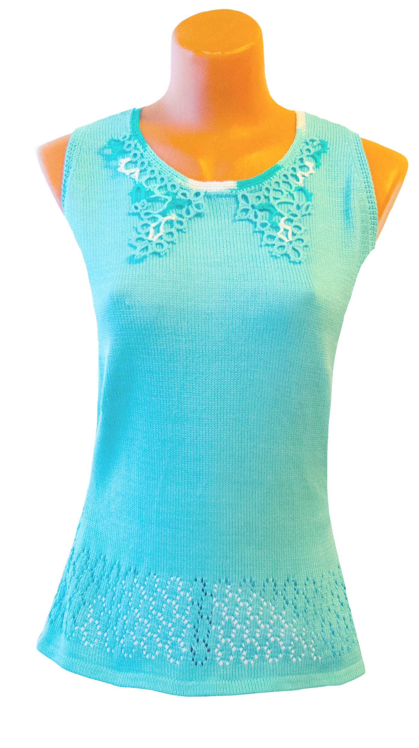 Tunic Turquoise Fabrication: Finished work Description The model is made on the basis of machine knit with lace trim tatting, openwork. Used in the manufacture of yarn 100% cotton. Piece is unique in design, very comfortable in hot weather (natural yarn, comfortable fit), will perfectly complement a summer wardrobe. Brand: Studio Vita700