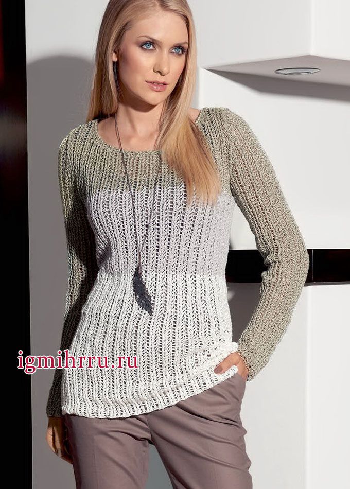 На каждый день. Ажурный пуловер с эффектом перетекания цветов, от немецких дизайнеров. Вязание спицами