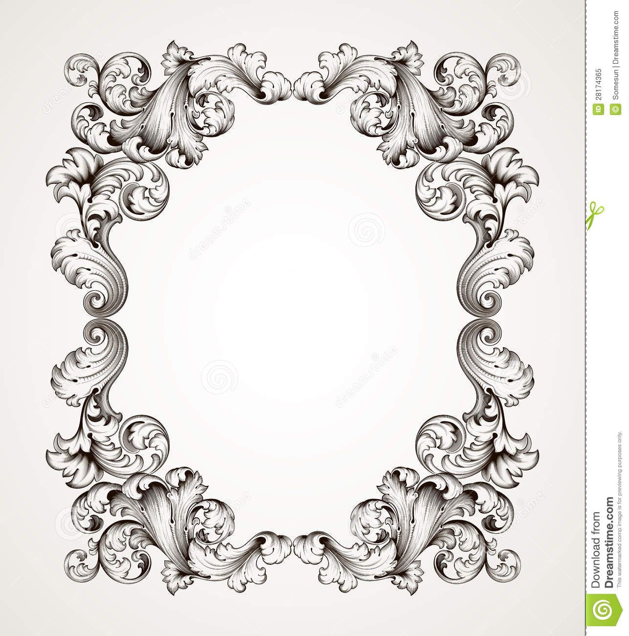Урожай границу рамки Гравировка в стиле барокко Вектор роялти стока - Изображение: 28174365