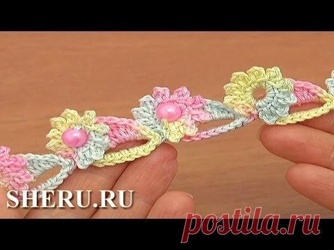 How To Crochet Floral Cord With Beads Урок 72 Цветочные элементы в шнуре