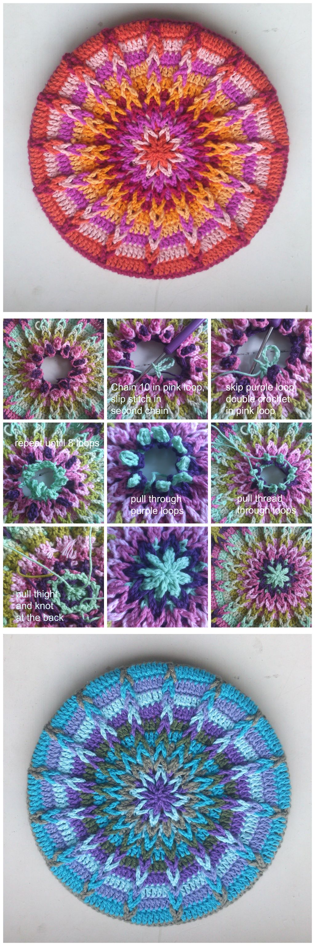 Яркие подставки под горячее, связанные радиальными косичками — Рукоделие