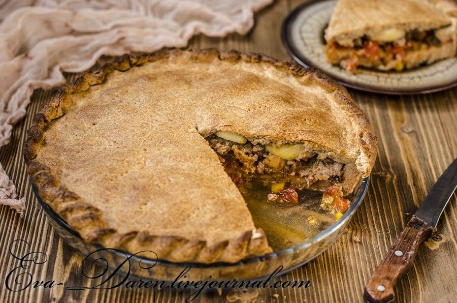 Мясной пирог с фаршем по-галисийски и яблочная галета