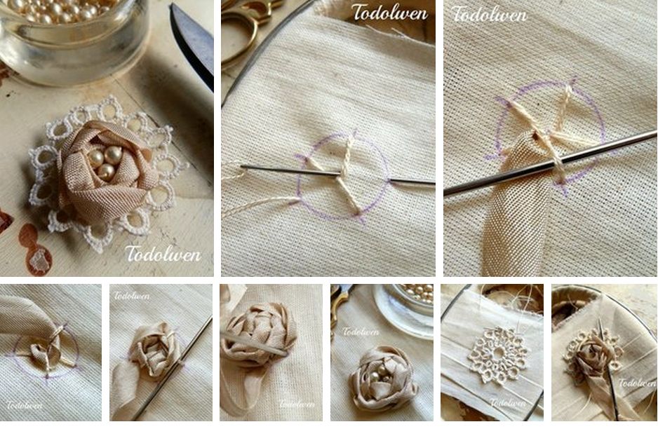 Rosas bordadas con cinta y perlas tutorial - enrHedando