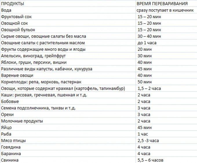 ВРЕМЯ ПЕРЕВАРИВАНИЯ ПИЩИ