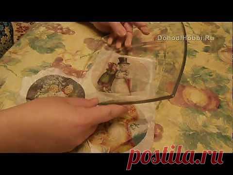 Декупаж на стекле. Обратный декупаж. Декор тарелки. StudiaHandMade.Ru - YouTube