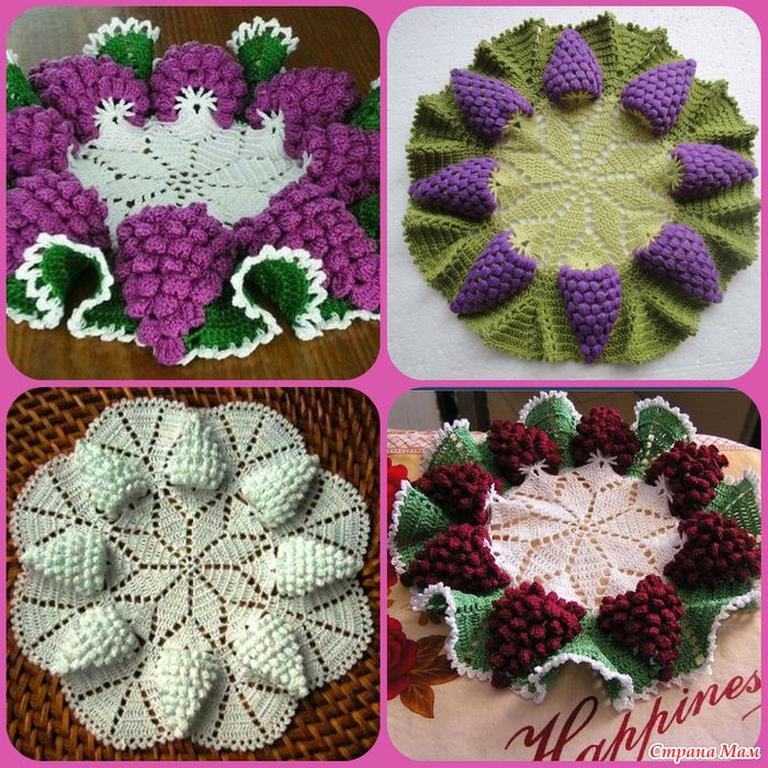 Совместное онлайн-вязание крючком салфетки "Виноградная лоза"