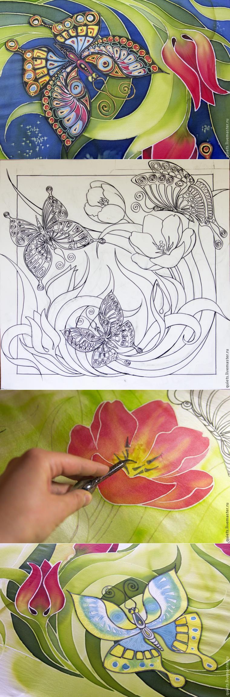 Расписываем платок "Бабочки и тюльпаны"