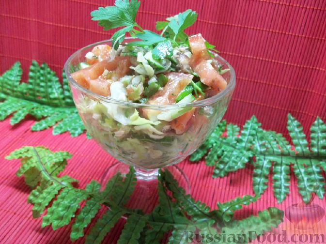 Рецепт: Салат с консервированной рыбой и свежими овощами на RussianFood.com