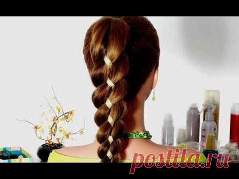 Коса из 4-х прядей (3+1 лента). - YouTube
