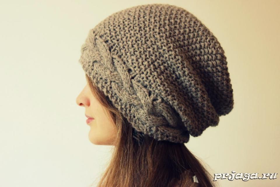 Женская шапка спицами с поперечной косой