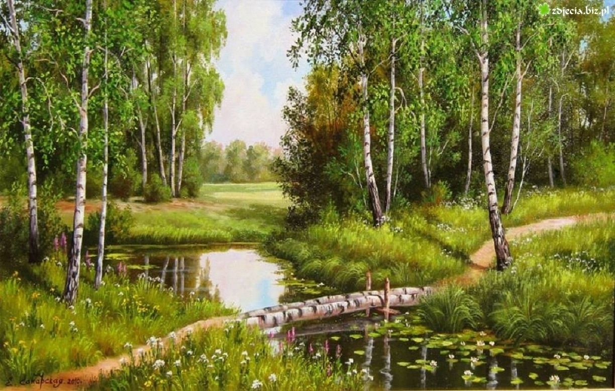 Березовый мостик (SP-1238) - картина стразами | Купить мозаику «Алмазная живопись» в интернет-магазине «Мир Вышивки»