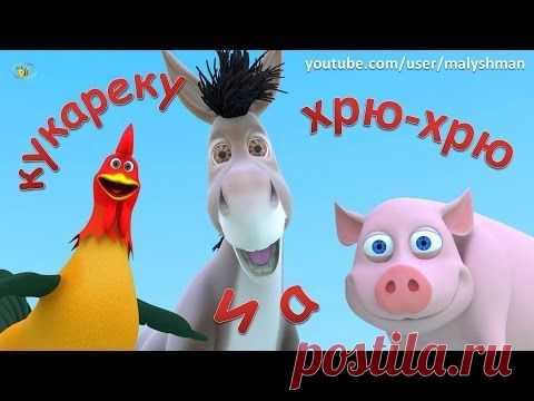 Домашние животные для детей. На ферме. Песенка - мультик про голоса животных. Кто как говорит? - YouTube