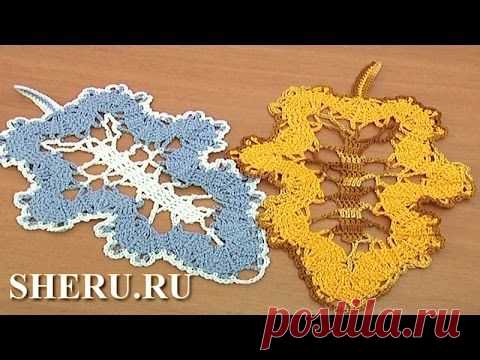 ▶ Bruges Lace Crochet Leaf Урок 10 часть 1 из 2 Кружевной листик в технике брюггского кружева - YouTube