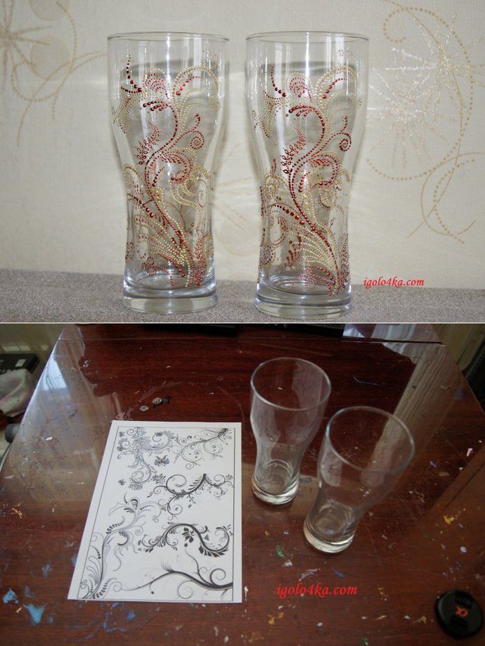 Роспись бокалов контуром по стеклу. Мастер-класс.