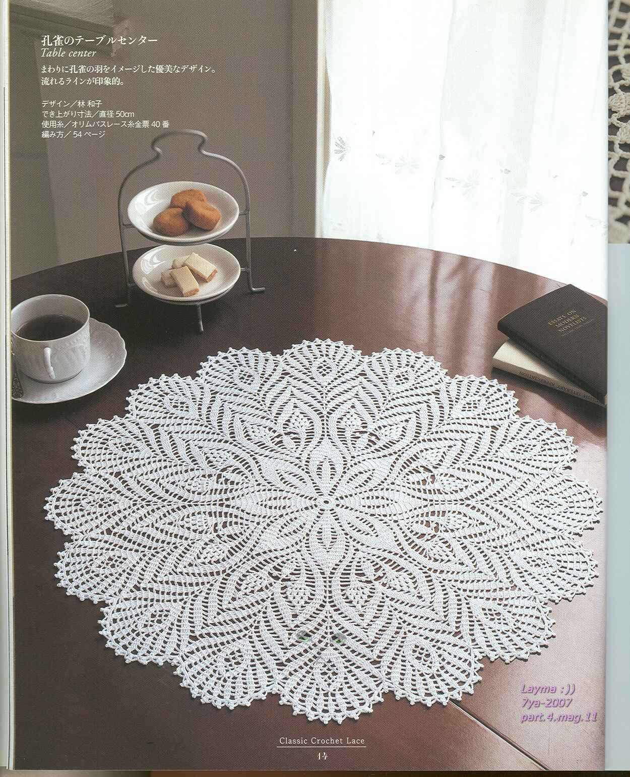 Салфетка крючком - узор павлинье перо