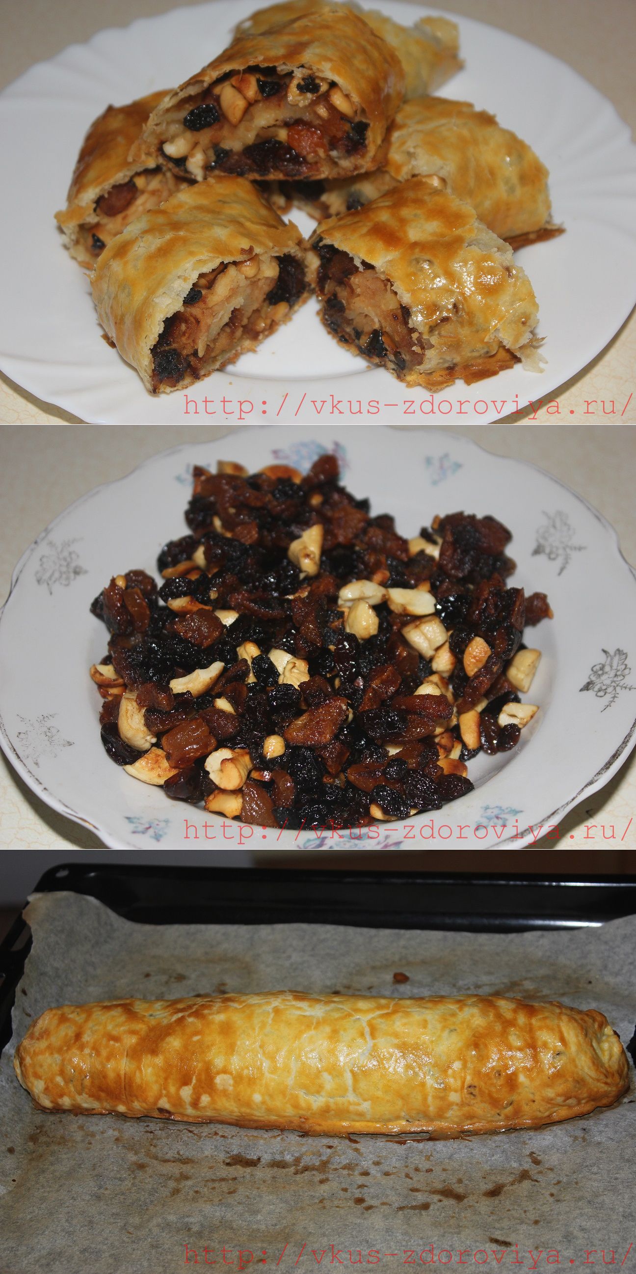 Штрудель с орехами и сухофруктами. | vkus-zdoroviya.ru
