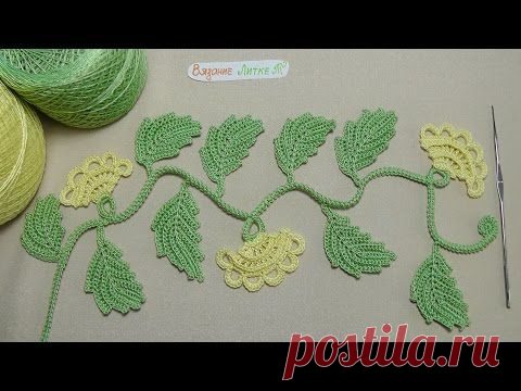 Урок вязания - ВЕТОЧКА с бутонами - ирландское кружево - Irish crochet lace