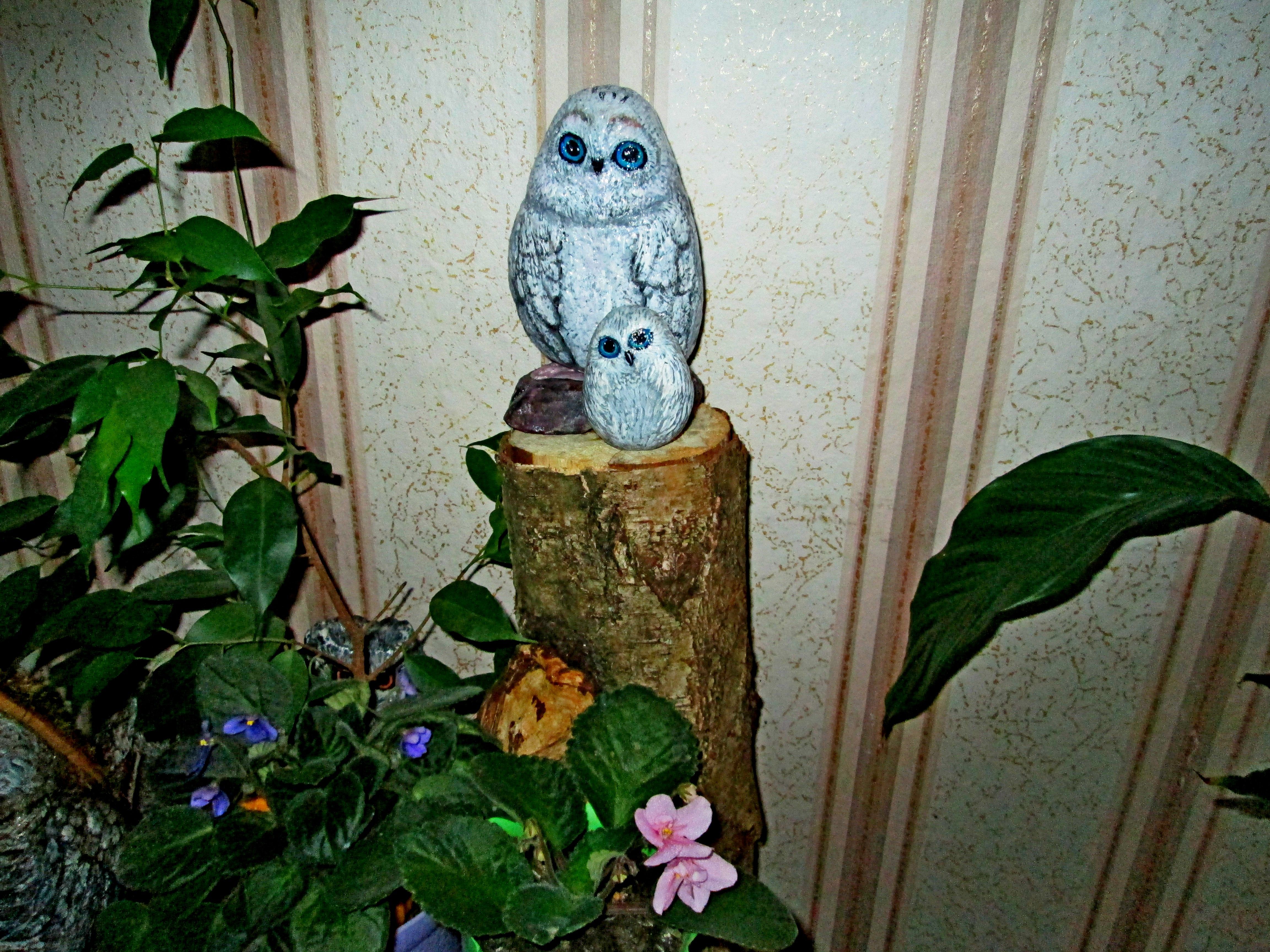 В природе существует редкий вид сов с голубыми глазами. Вот и мои, каменные стали похожими на них!!!!