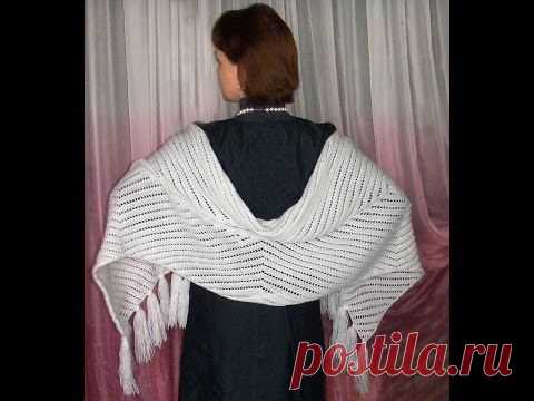 Белый палантин. Обучение машинному вязанию. Курс "Учимся вязать за 4 урока"