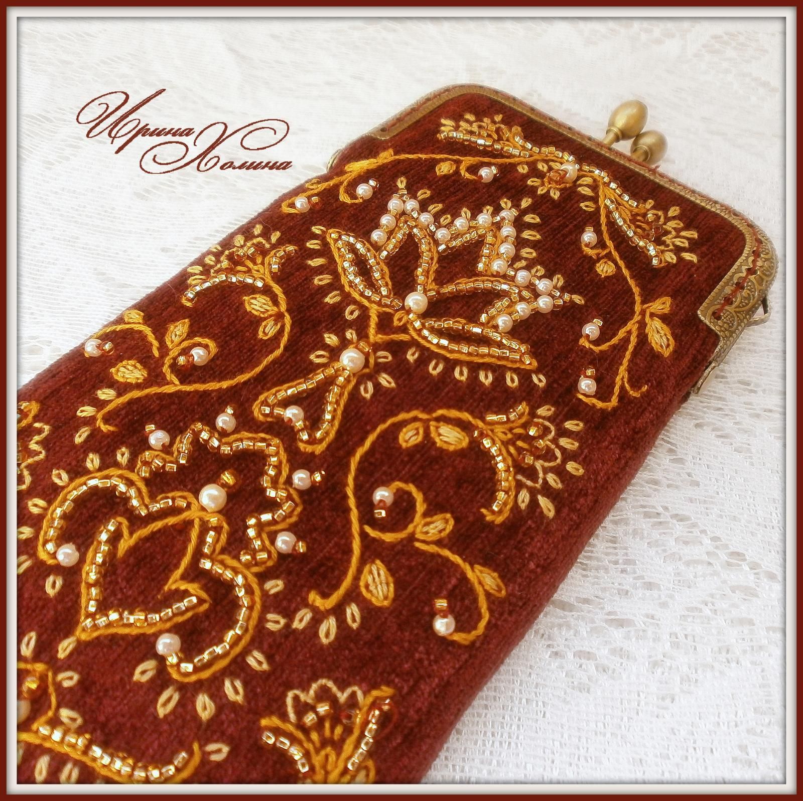 Вышитый очечник (футляр для очков) БОРДО | biser.info - всё о бисере и бисерном творчестве
