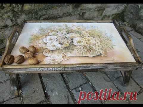 Decoupage tutorial - DIY. How to make old wood texture. How to decorate wooden tray. - YouTube