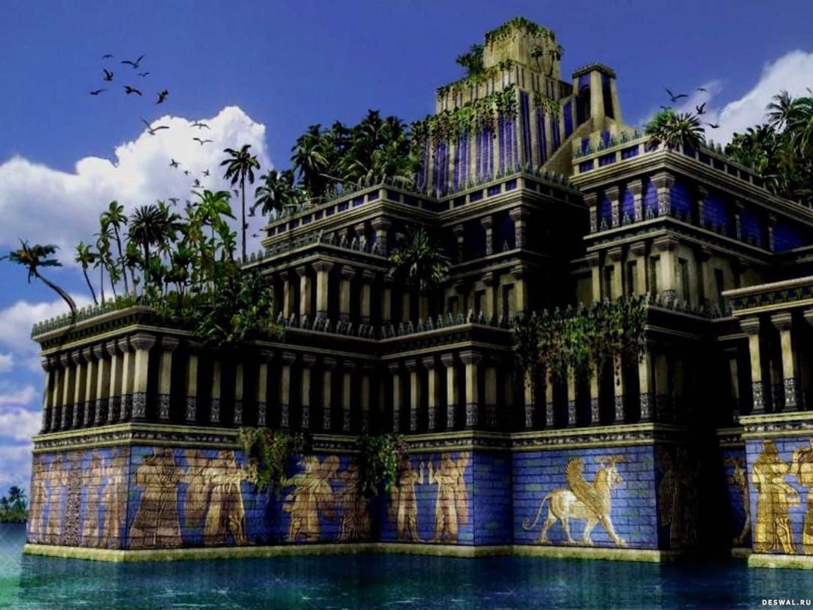 Сады Семирамиды. Легенда повествует,что царь Навухудоносор 2 приказал построить сады ради тосковавшей по дому молодой жены Амитис,надеясь,что они напомнят ей родные персидские горы.