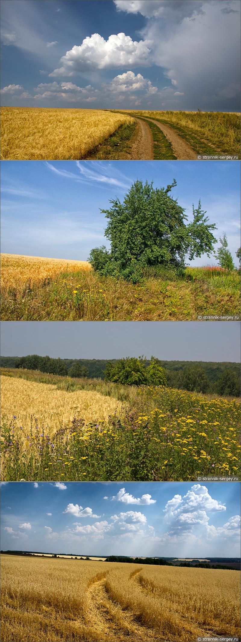 Золото лета: природа в августе — пшеничные и ячменные поля на холмах в окрестностях Зарайска (фото картина)