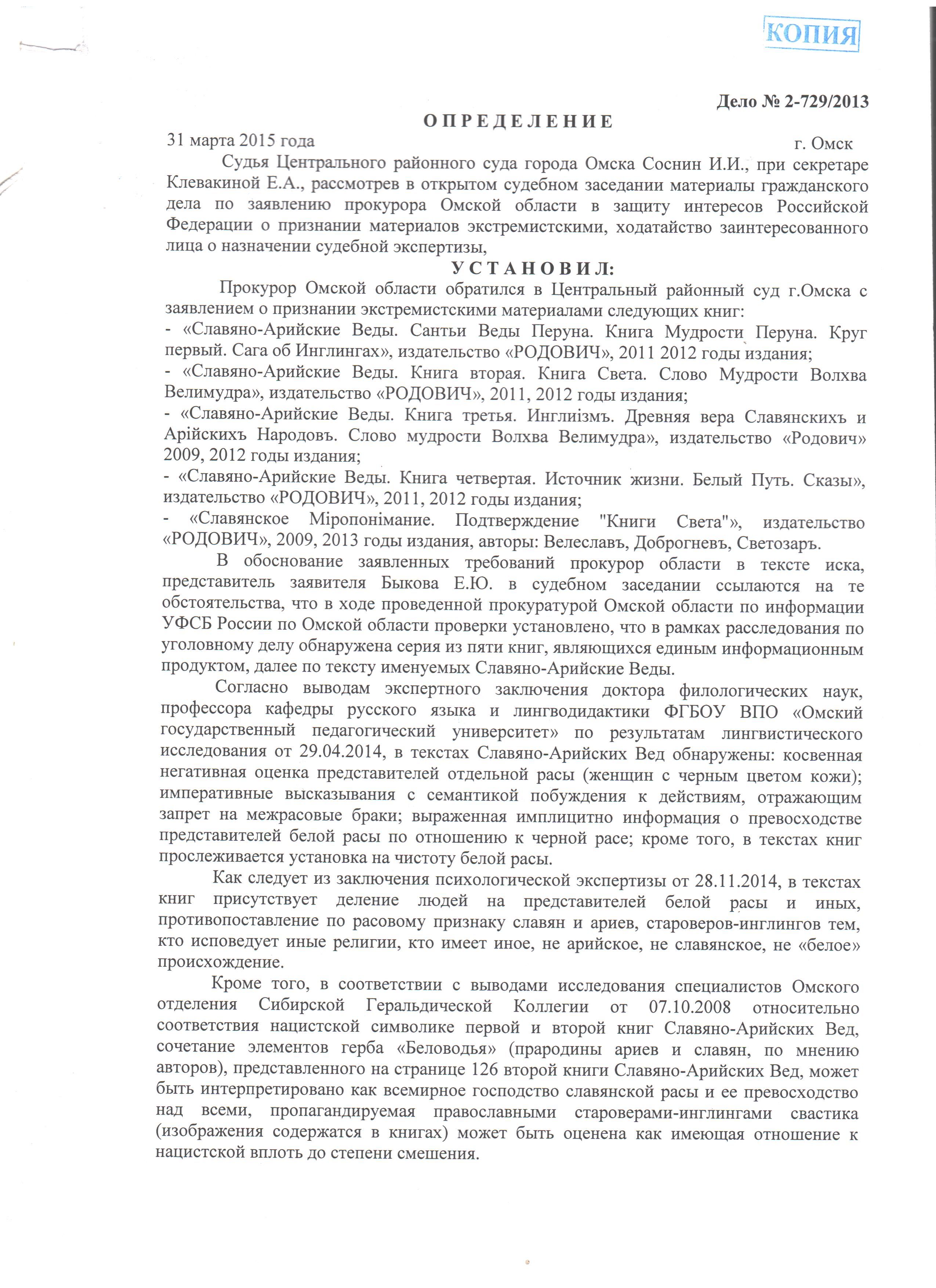 Начался суд над "Славяно-Арийскими ведами" (обновлено 15.04.2015)