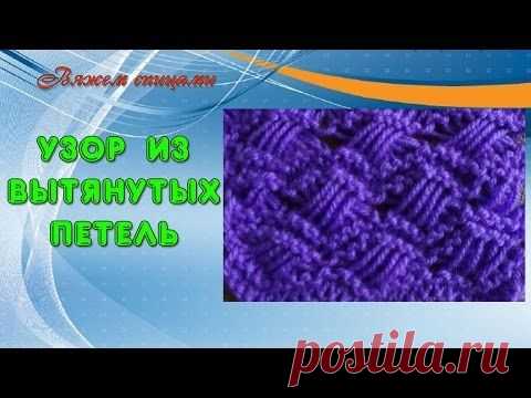Узоры с вытянутыми петлями. Вяжем переплетенный узор с вытянутыми петлями.