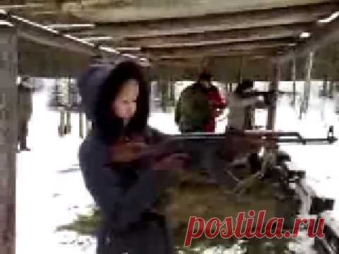 стрельбы. девушка стреляет из автомата калашников. армия.