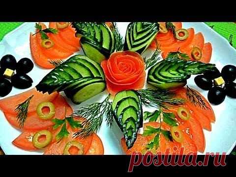 Украшения из овощей. Украшения из огурца. Как красиво нарезать огурец. Decoration of vegetables