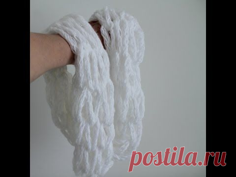 Шарф - снуд, вязание без спиц и крючка на руках из связанной на пальцах цепочки. - YouTube