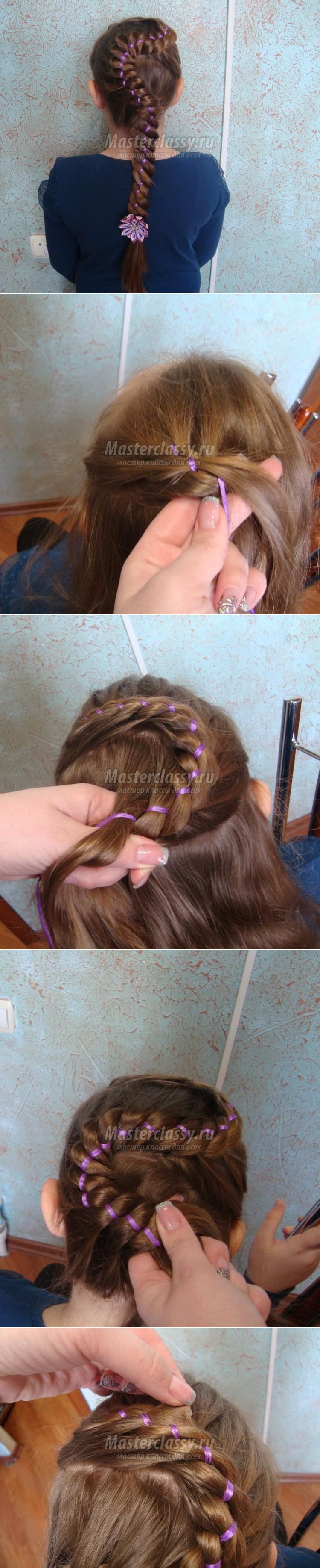 Прически для девочек в школу. Плетение косы с лентой. Мастер-класс с пошаговыми фото