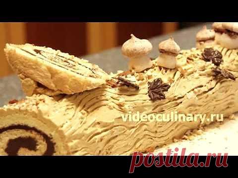Рецепт - Торт Рождественское полено от http://videoculinary.ru - YouTube