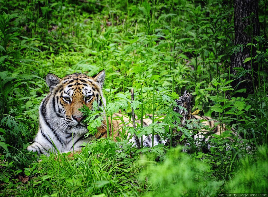 Тигр – это один из самых умных зверей. Он необыкновенно хитёр, способен оценивать сложившуюся обстановку и предвидеть события. У него тонкая интуиция, прекрасная наблюдательность, крепкая память. Несмотря на кажущуюся свирепую беспощадность и кровожадность, амурский тигр довольно добродушен и миролюбив.
