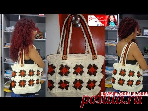 CARTERA O BOLSO GRANDE EN CUADROS TEJIDA A CROCHET PASO A PASO