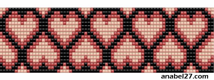 схема браслета из бисера ко дню святого валентина сердца сердечки бисероплетение ткачество | beads/biser