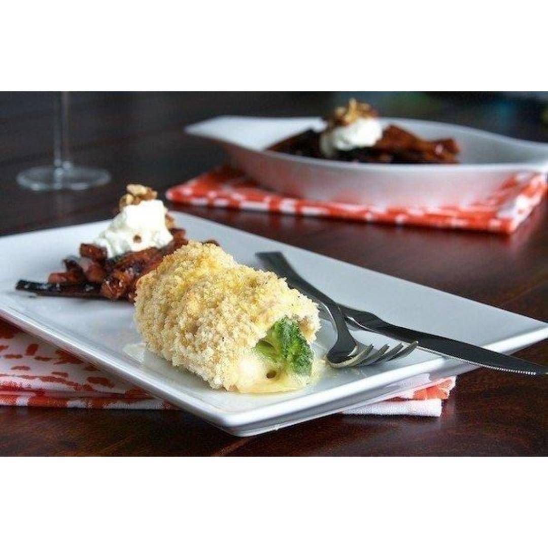 Хрустящие куриные рулетики с брокколи и сыром Ингредиенты: брокколи (соцветия) 3/4 стакана вода 1 ст. л. куриные грудки 4 шт. мука 1/2 стакана панировочнные сухари 1/2 стакана соль и перец - по вкусу сыр Моцарелла 50 г твердый сыр 50 г яйцо 1 шт.
