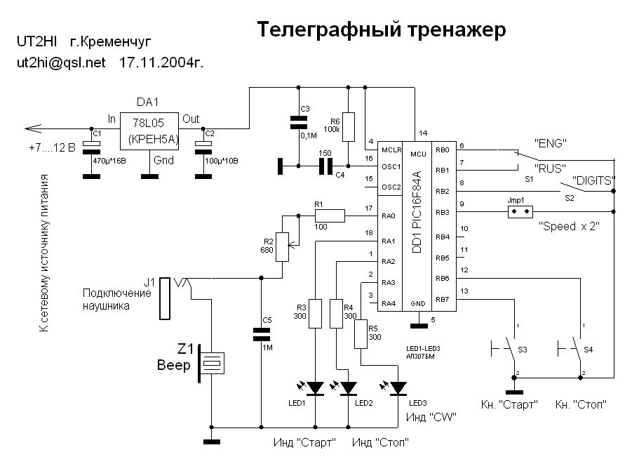 Телеграфный тренажер для изучения азбуки Морзе.Прошивку для контроллера совершенно бесплатно можно получить у автора.