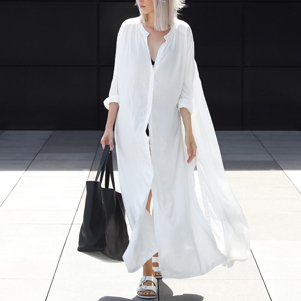 2015 новый летний Elegent кардиган прикрытие с длинным рукавом макси бич Boho сплит рубашка белая Большой размер платья vestidos купить в магазине Andy's store 1 на AliExpress