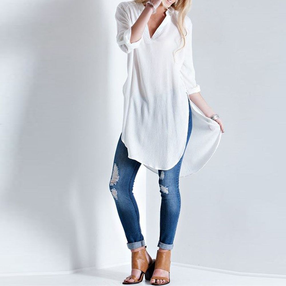 Платье , Новое лето стиль леди Elegent сексуальный с v образным вырезом длинная рубашки топы блузка разрез рубашка белый для женщины купить в магазине Andy's store 1 на AliExpress