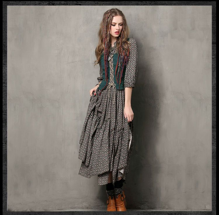 Платье Винтажный Три Четверти Лето , Стиль женщины 2015 Yuzi туника хлопок Combo воротник мандарин рукав макси Vestido 6526 купить на AliExpress